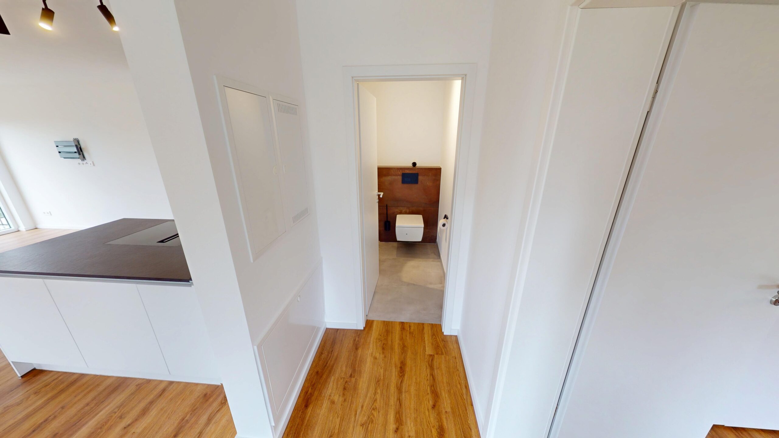 Neben einer kompletten Erneuerung aller Leitungen, Oberflächen und Installationen erfolgte auch eine Optimierung des Grundrisses. Durch gezielte Veränderungen wirkt die Wohnung heute deutlich offener und heller – unterstützt durch vergrößerte Fensterflächen, die für mehr Tageslicht und ein großzügiges Raumgefühl sorgen.