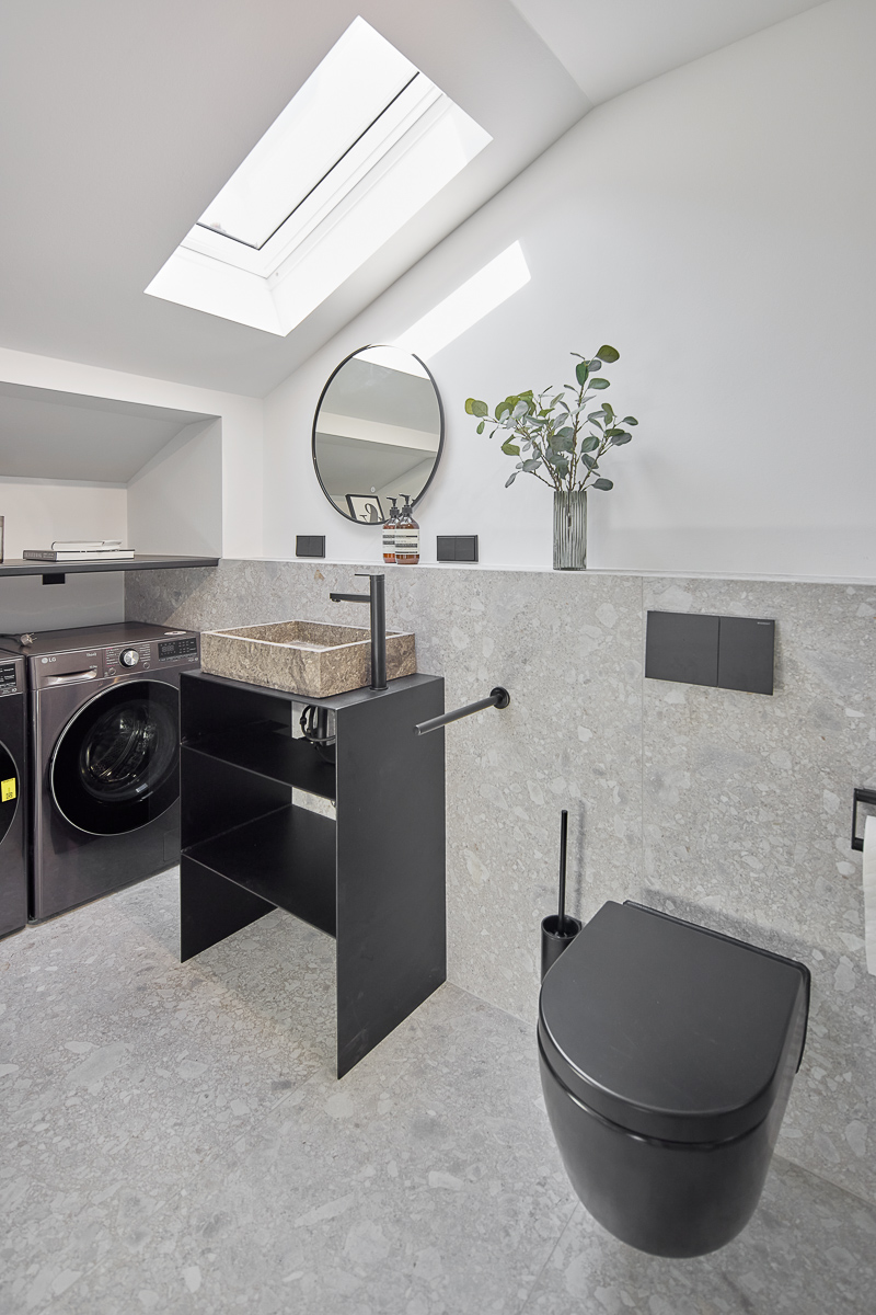 Diese 74 m² große Maisonettewohnung wurde vollständig kernsaniert und auf ein modernes Loft-Niveau gehoben. Ausgangspunkt war eine stark in die Jahre gekommene Immobilie, die von Grund auf neu gestaltet wurde.